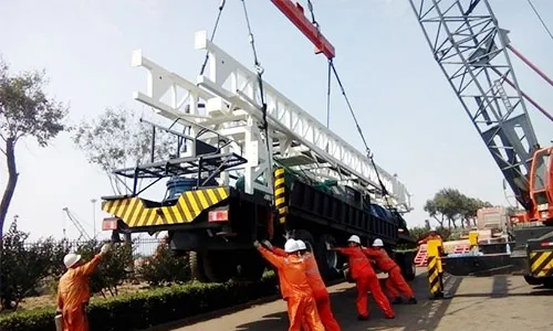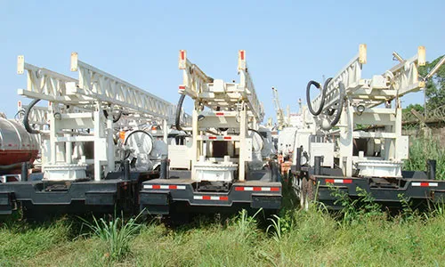 7. Имеет гидравлическую вспомогательную лебедку, которая обладает большим усилием подъема и высокой скоростью подъема. Она удобна как для погрузки бурового инструмента, буровых труб и транспортировки буровых принадлежностей, так и может перемещаться вверх и вниз с якорями, что очень удобно для погрузки и разгрузки буровых труб.