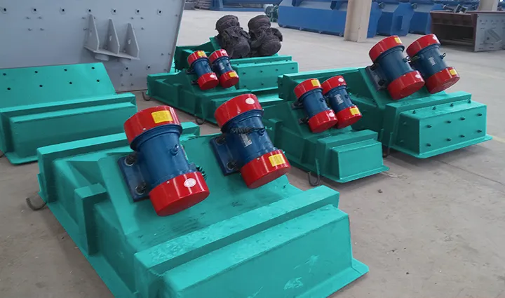 Двигатель приводит ведущий вал через треугольный ремень, а затем вращается пассивной осью зубчатой передачи, зацепленной на ведущем вале. Основные и пассивные оси вращаются в обратном направлении одновременно, так что корпус резервуара вибрирует и материал постоянно течет для достижения цели транспортировки материала.