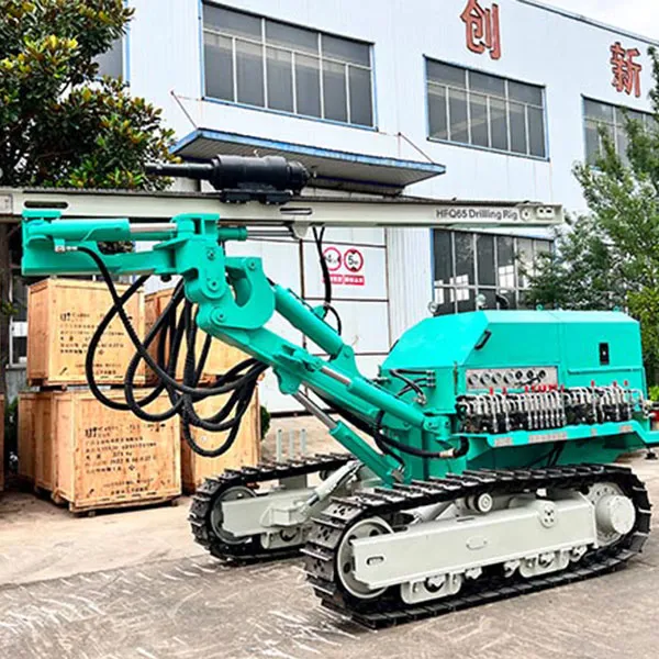Высоконапорная пневмоударная буровая установка HFQ65 на гусеничном ходу обладает низким энергопотреблением, высокой эффективностью, легкой транспортировкой и превосходными техническими характеристиками для полевого строительства. Органы перемещения машины приводятся в действие гидравлической системой, и только источник сжатого воздуха потребляется ветровой машиной, что приводит к экономии при комплектации воздушной машины в полном комплекте оборудования.